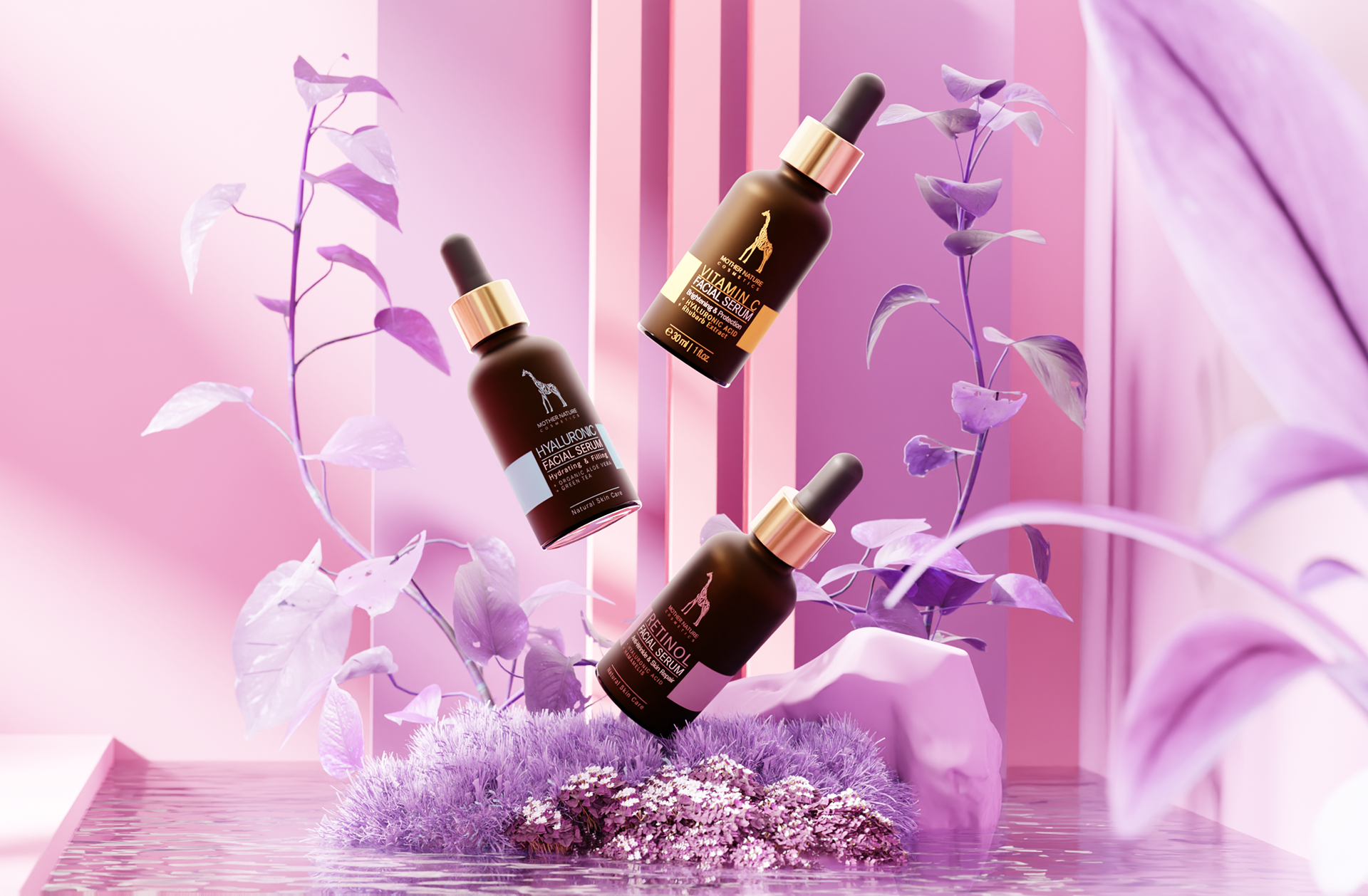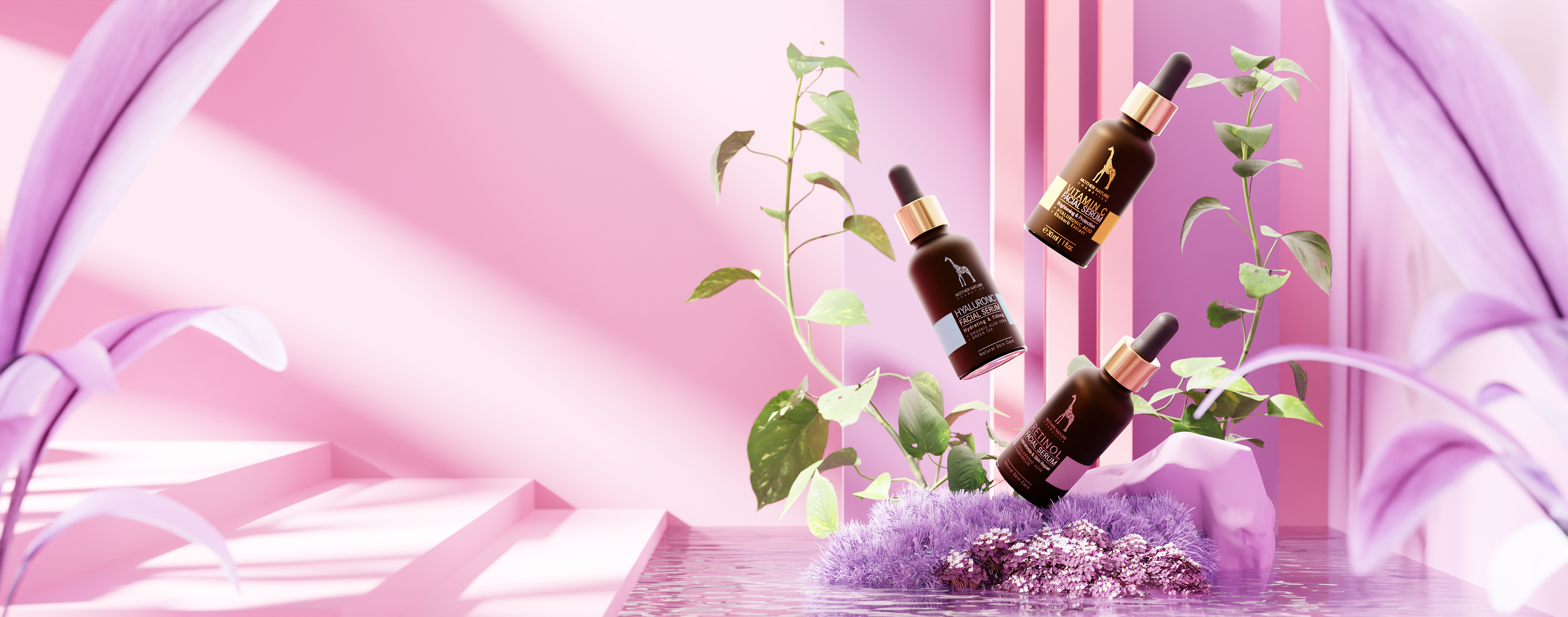 Our team was responsible to create the FULL CGI HEADER Image for Mother nature cosmetics.
